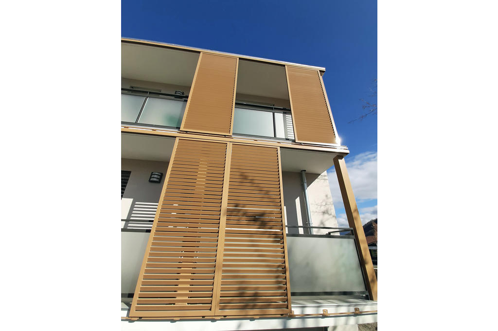 Une question sur cette réalisation ? Demande d'étude Vif (38) LE RIVALTA Brise-vue aluminimum modèles ÉLIAL et TALIAL Caractéristiques - Remplissage en lames R335 (50x15mm) Voir le produit utilisé pour cette réalisation